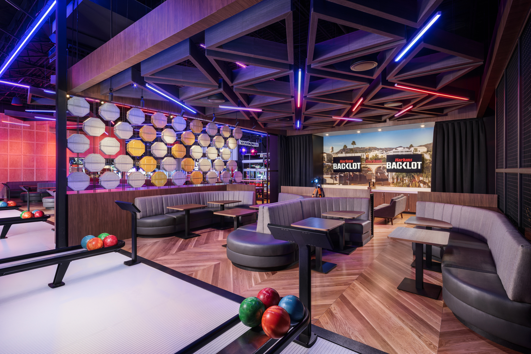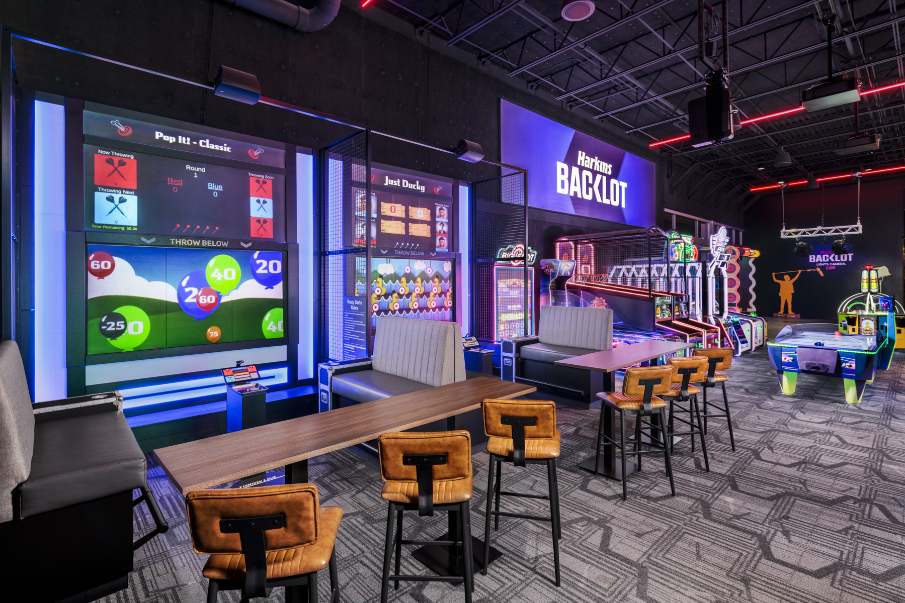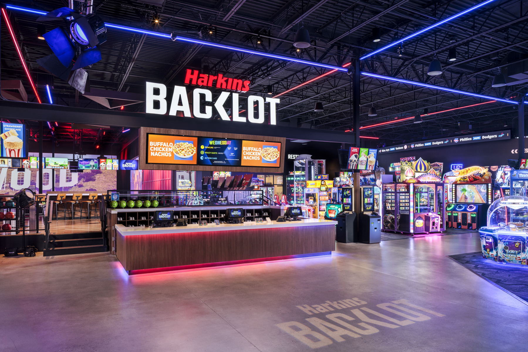 Twin Shores delivered Harkins BackLot, a 30,000‑square‑foot entertainment destination at the Shops at Norterra in Phoenix, AZ. This project was a full tenant improvement, transforming a former Best Buy store into a dynamic multi‑attraction venue.