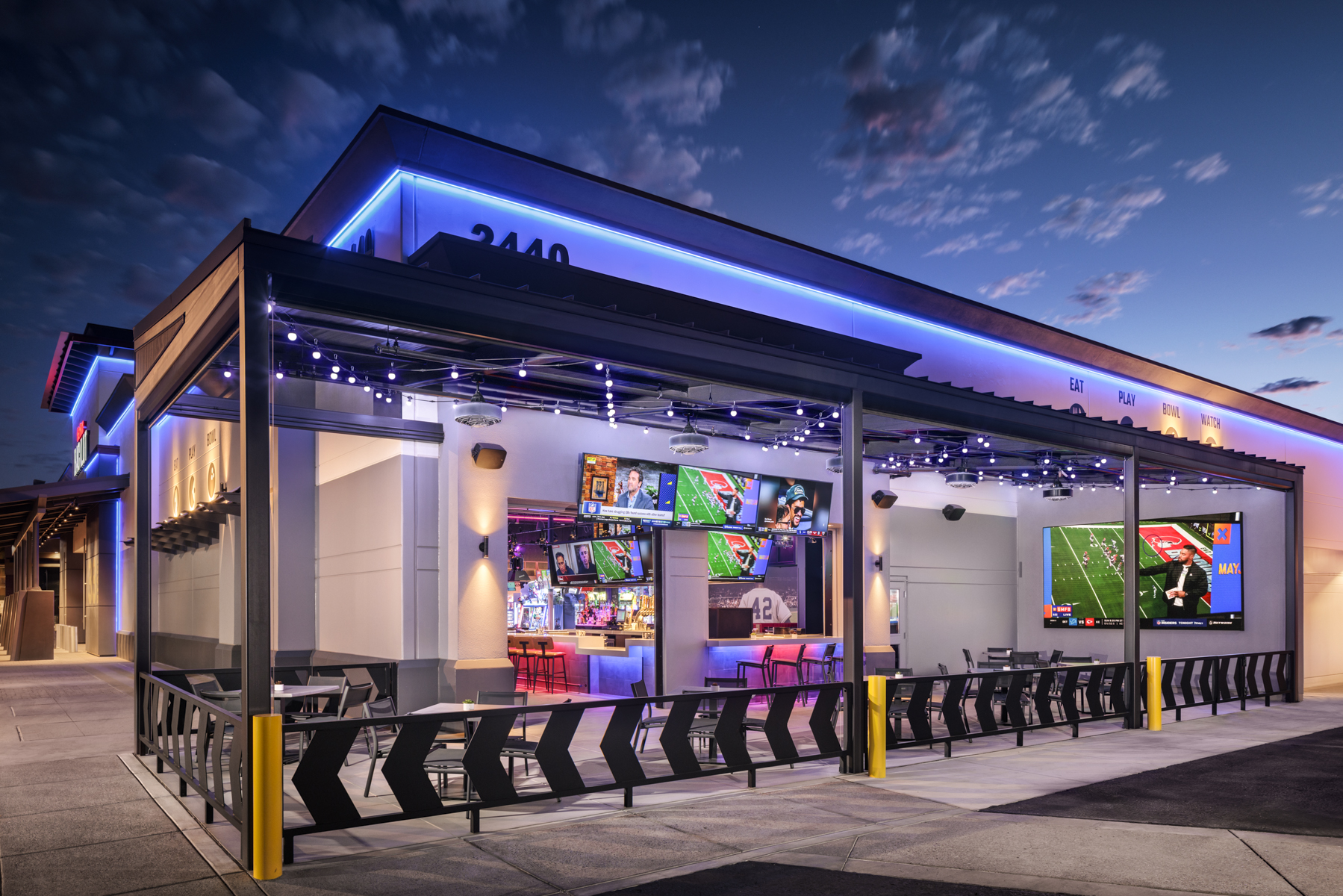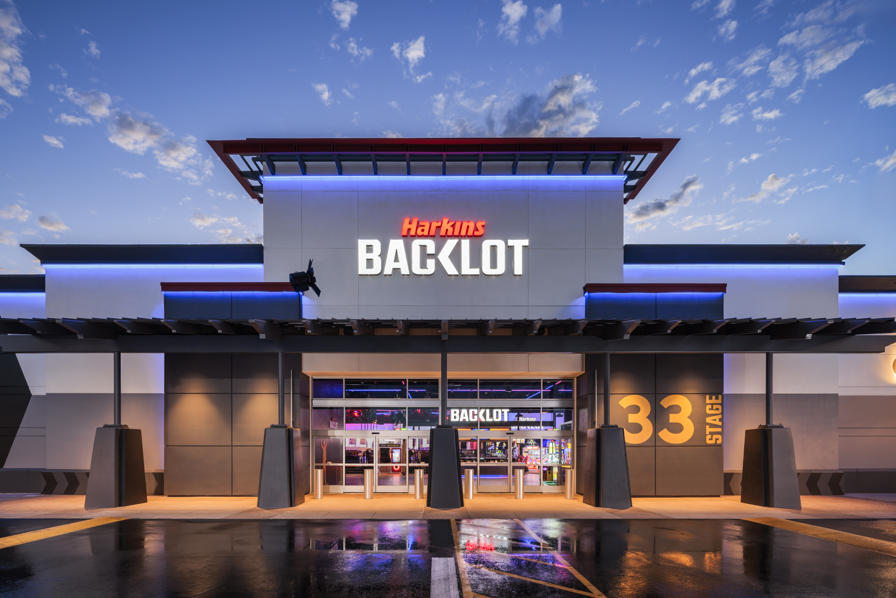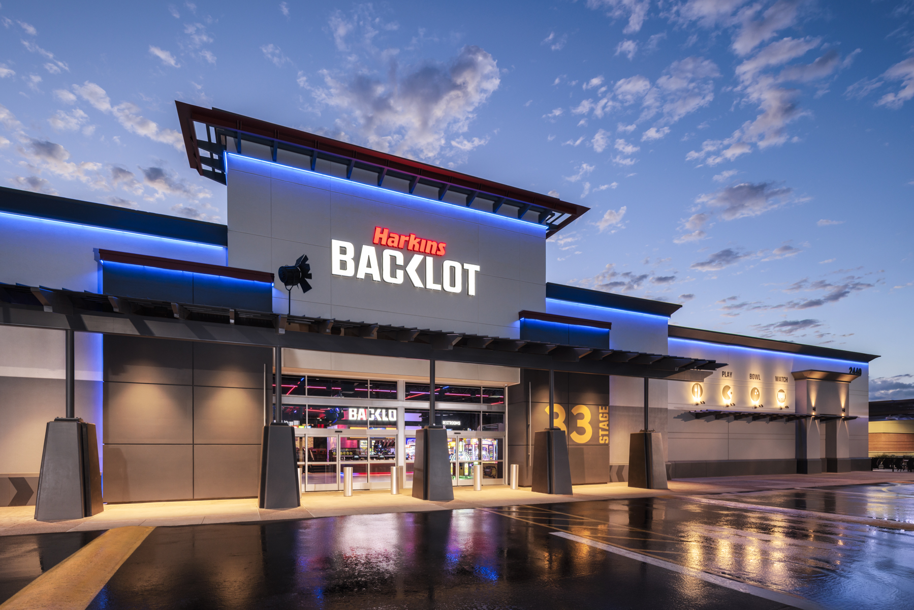 Harkins BackLot features bowling lanes, arcade games, private event spaces, and a full‑service restaurant and bar with indoor seating and an outdoor patio. From initial mobilization through final turnover, Twin Shores executed every phase with precision, safety, and efficiency—bringing to life a vibrant new hub now serving the Phoenix community.